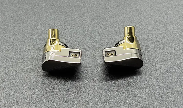 The inner side and nozzle include brass-plated gold elements, which, together with the silver section, add contrast. The nozzle is a bit wide but comes with a standard length. It lacks a lip, so ear tips may occasionally slip off.