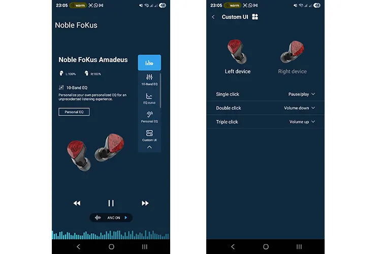 The Amadeus is also ANC-capable and, like the Rex5, this can be controlled via the accompanying Noble FoKus app with ambient or transparent options also available.