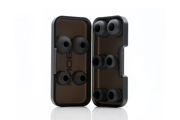 You get two silicone choices: a grey single flange narrow bore version and a wide bore dual flange alternative. Both tips come in small, medium, and large, with a spare single flange set on the drivers out of the box.