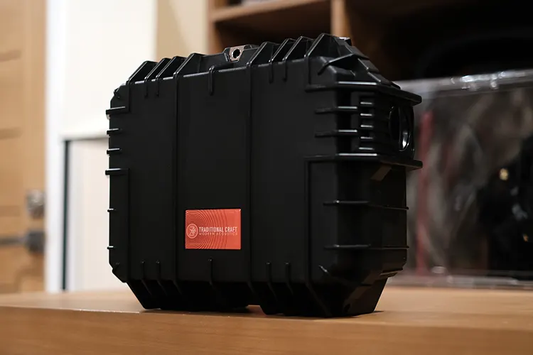 The Caldera Closed sample I have here is finished with a strongly grained Shou Sugi Ban ash wood, which produces a very striking look to the naked eye.
